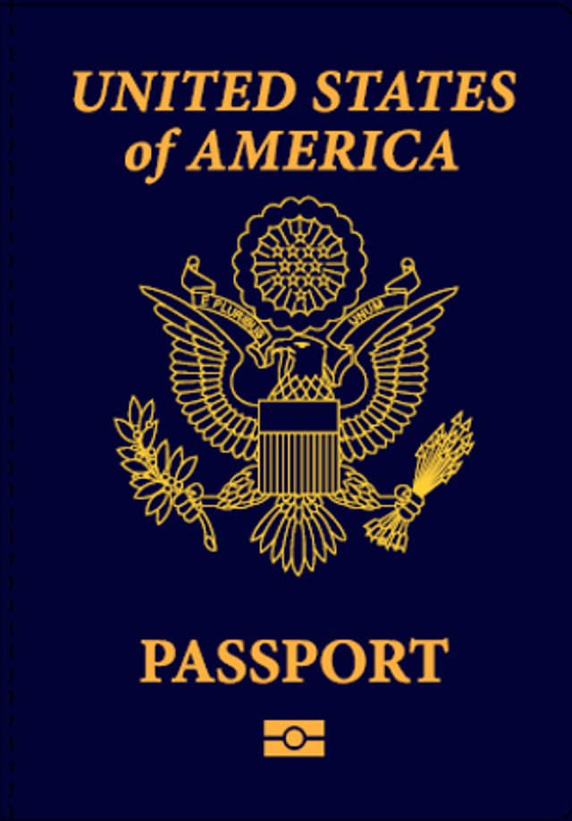 The front and back of the new passports will also differ somewhat from the current design. The front cover now reads “Passport” in gold text above a rendering of the image of a bald eagle from the center of the seal of the United States, with “United States of America” in smaller text beneath it. The new design will flip the order of the wording, so that “United States of America” will be featured larger at the top of the cover and “Passport” will be lower down.