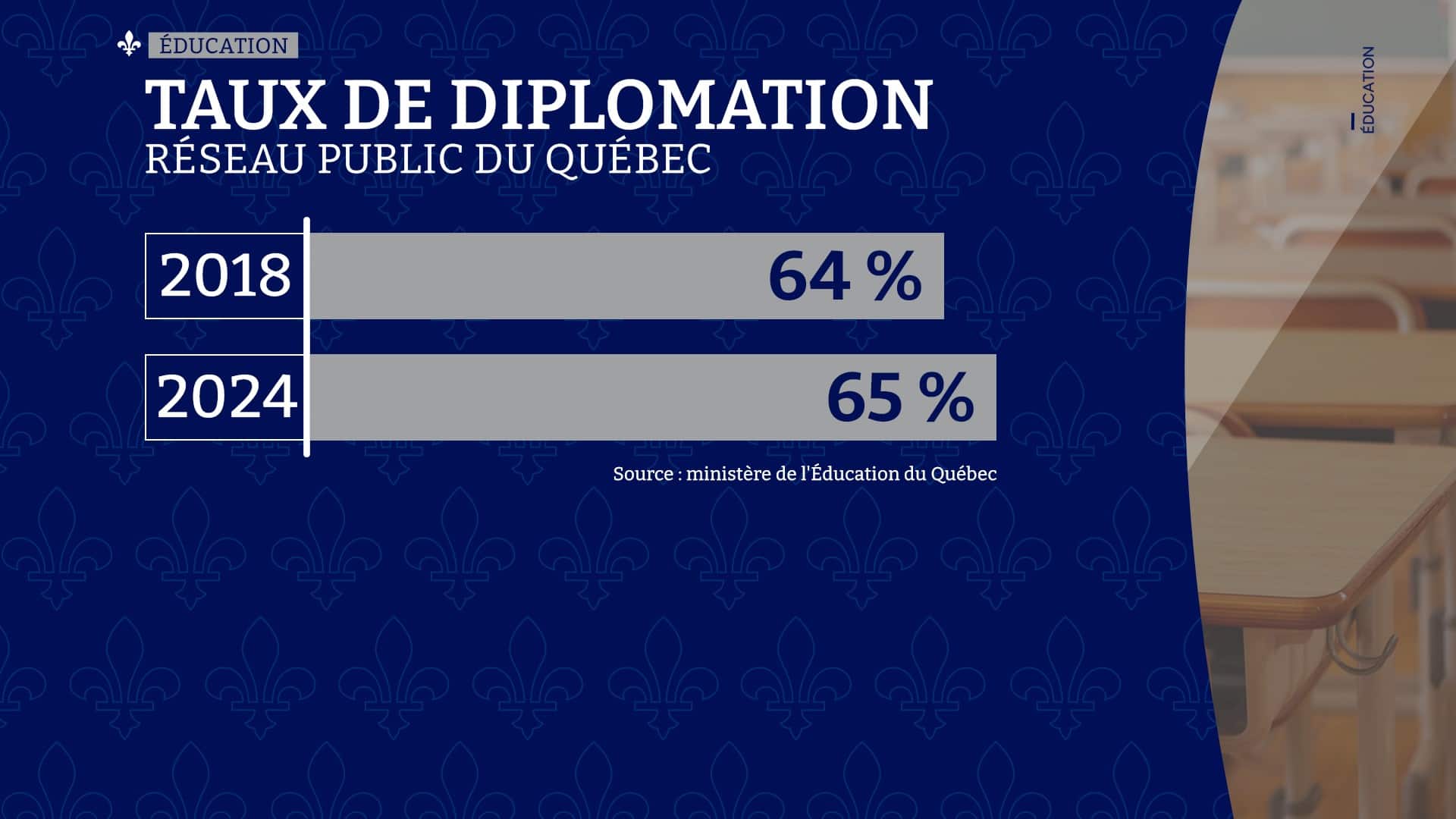 Est-ce que tout ça a un impact? Les résultats sont mitigés, selon l'Institut du Québec. Le taux de diplomation est notamment resté stable, variant entre 64% et 65% depuis 2018.