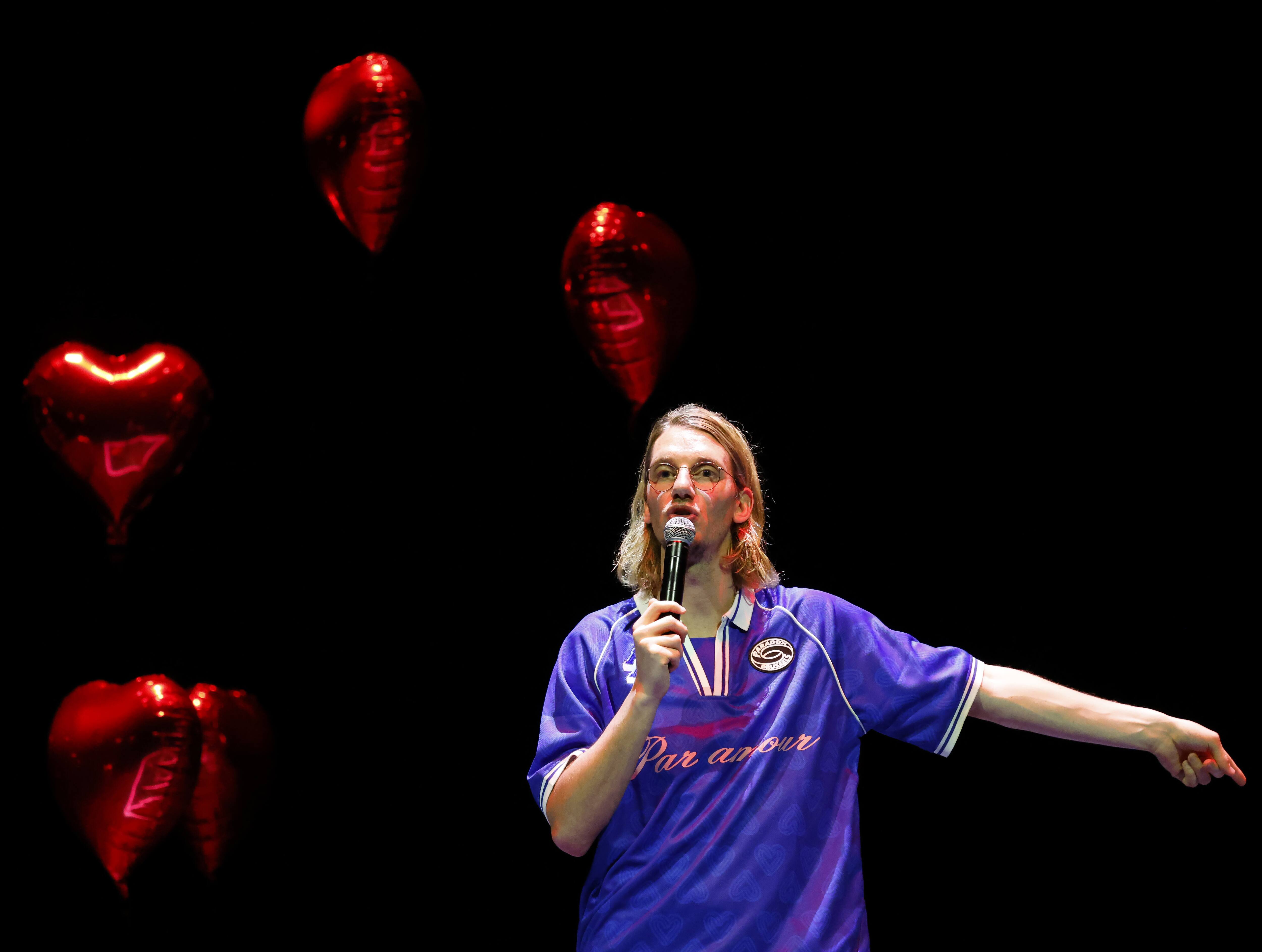 L’humoriste français, originaire de Montpellier, était de retour après une visite, le 19 juin 2025, à la salle Louis-Fréchette du Grand Théâtre, avec le même spectacle, intitulé par amour.
